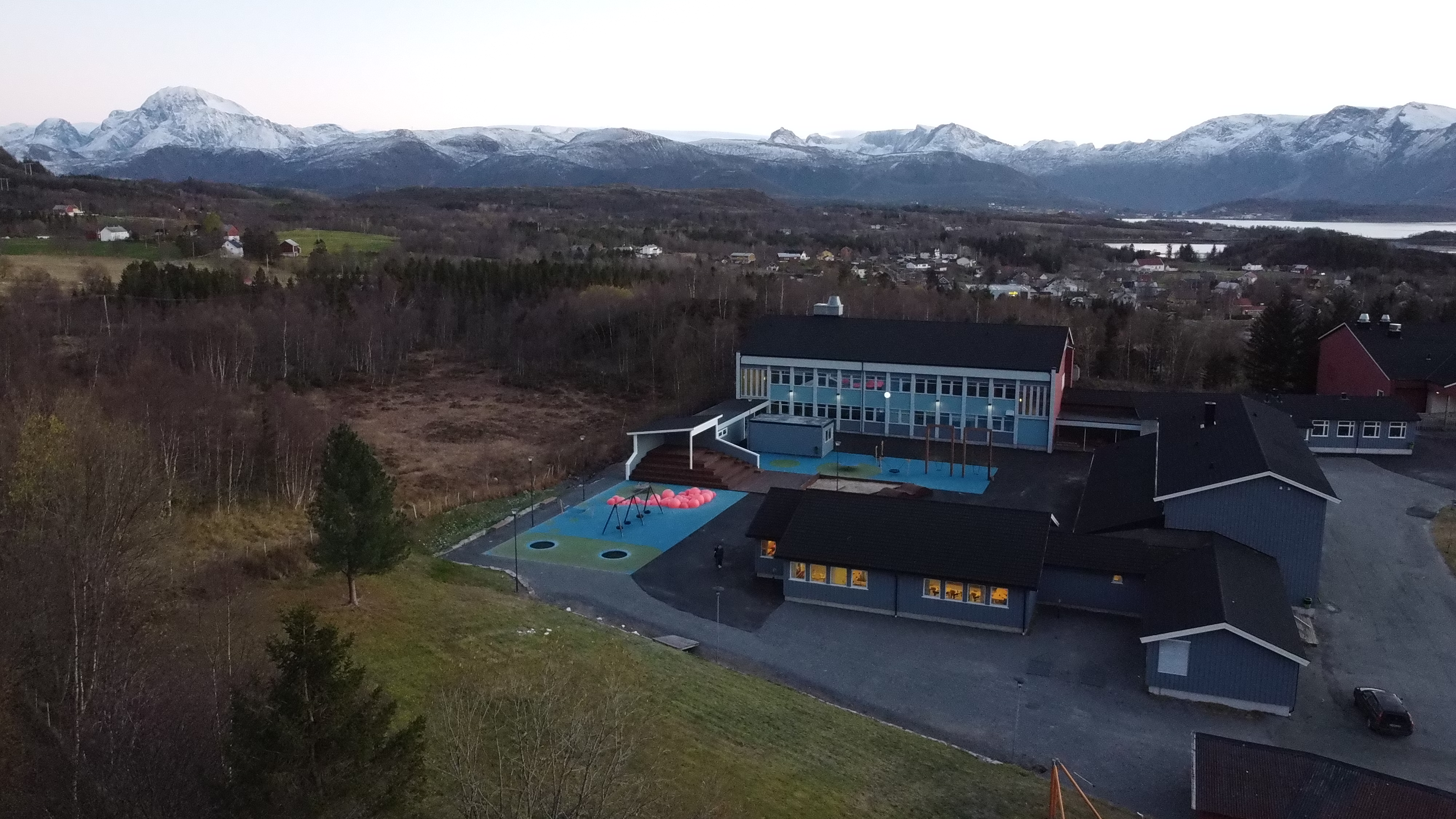 Barneskolen er fra 1959 og ble pusset opp både utvendig og innvendig i 2000. Da fikk vi også nytt bygg til SFO, første og andre klasse. I tillegg fikk de ansatte egne kontorarbeidsplasser.