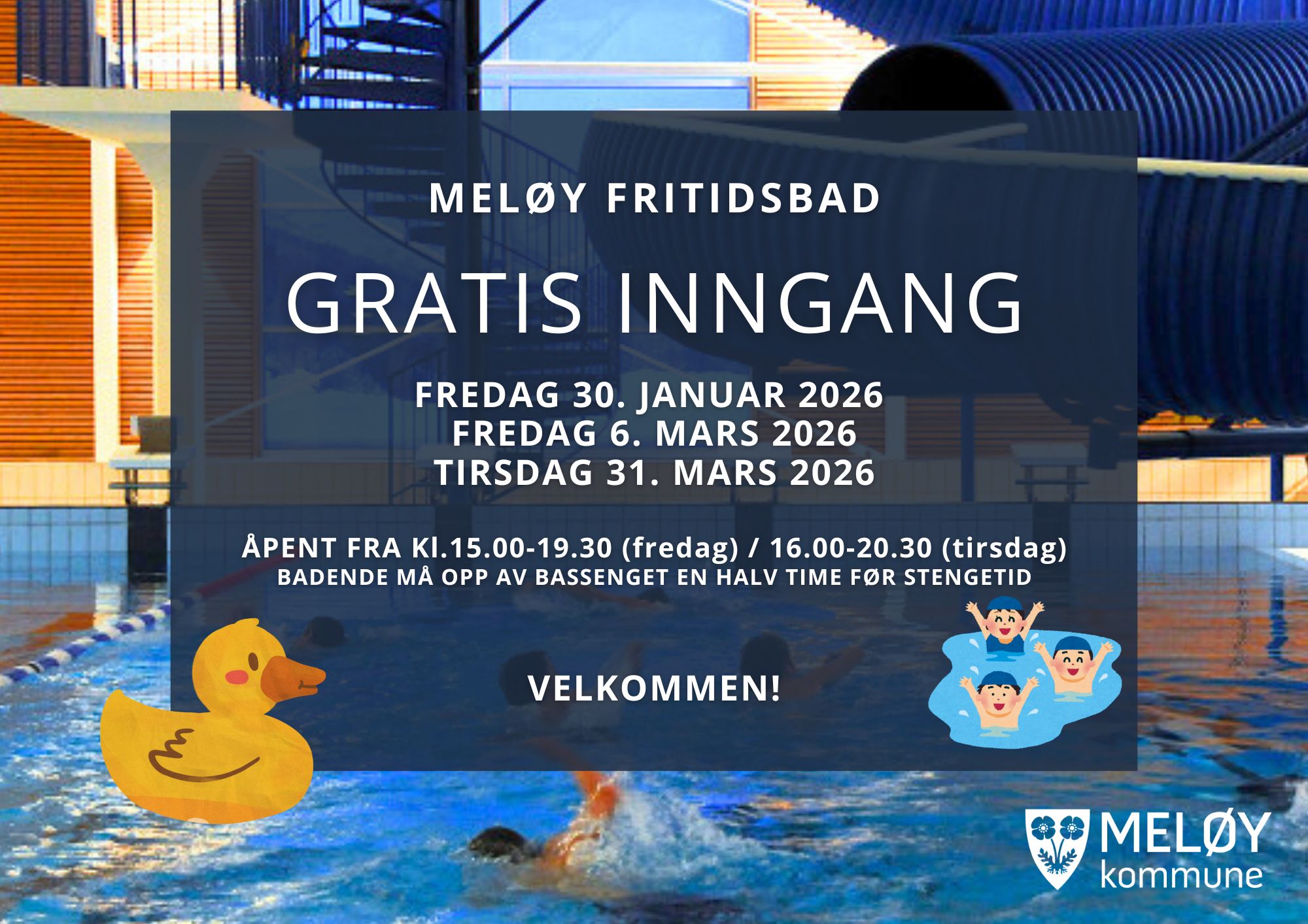 Gratis folkebad arrangeres av Meløy Kommune, ved Kulturkontoret med støtte fra Barne-, ungdoms- og familiedirektoratet.